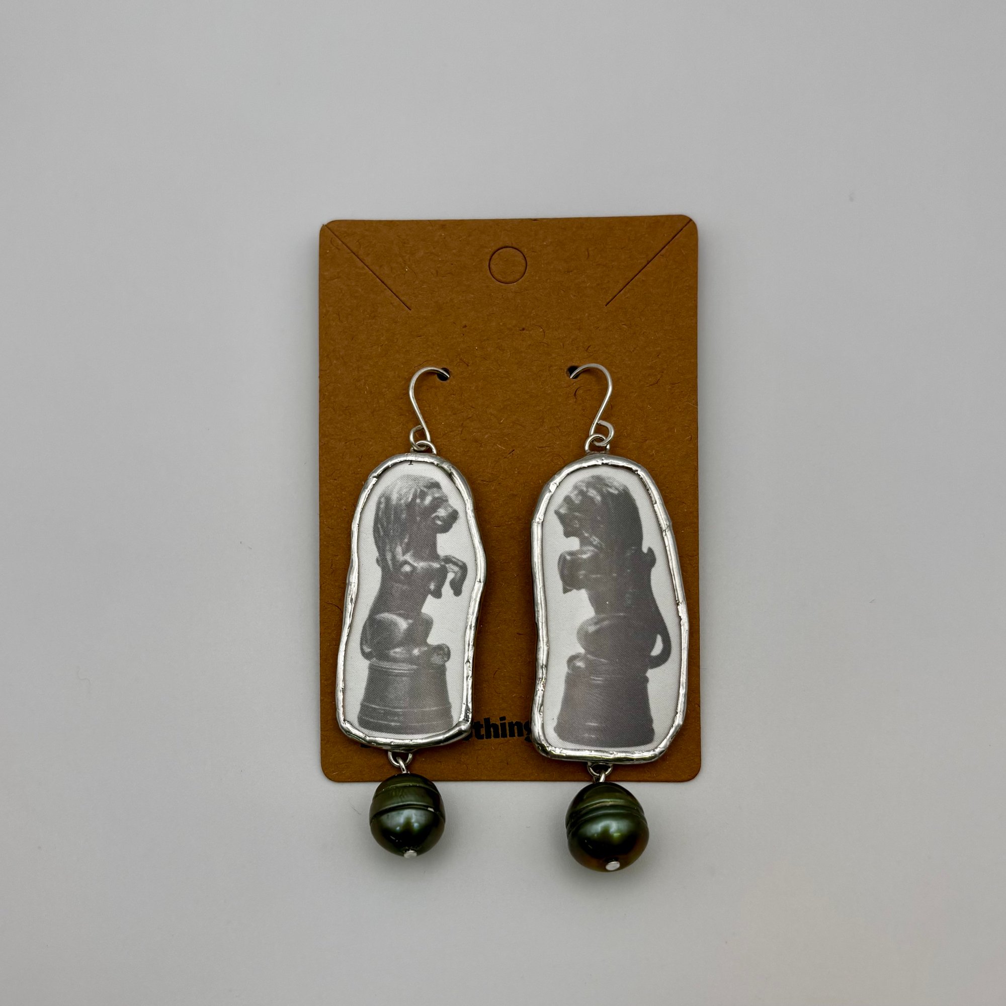 Adorable soft soldered earrings made with vintage magazine/book clippings and cultured pearls. Each earring weighs approximately .35oz each.