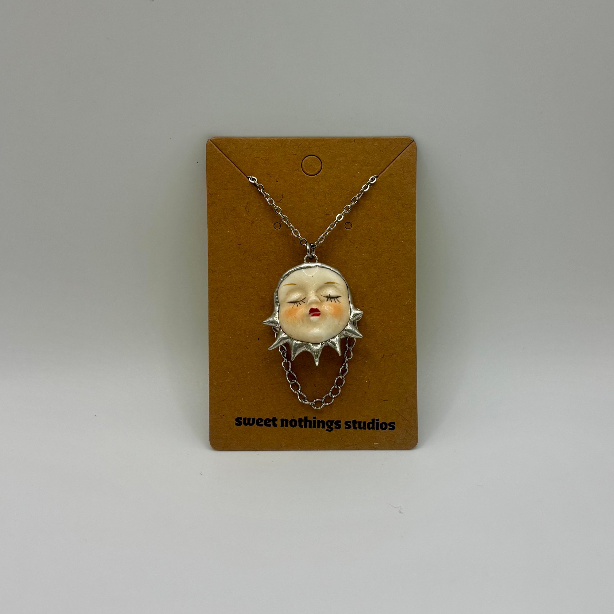 Adorable soft soldered pendant made with vintage thrifted trinkets. Includes an adjustable 16-18 inch stainless steel chain.