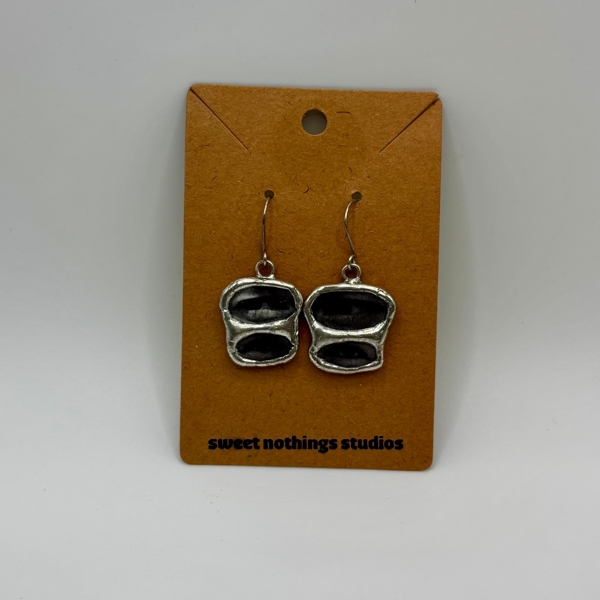 All earring hooks are sterling silver unless otherwise stated. Lead free solder is made up of a silver/copper/tin alloy. All findings and chains are stainless steel. Due to the handmade nature of this piece, handle with care. Spikes are...spiky. Glass and ceramic elements are fragile, always wear earring backs. DO NOT GET JEWELRY WET. See FAQ page for jewelry care.