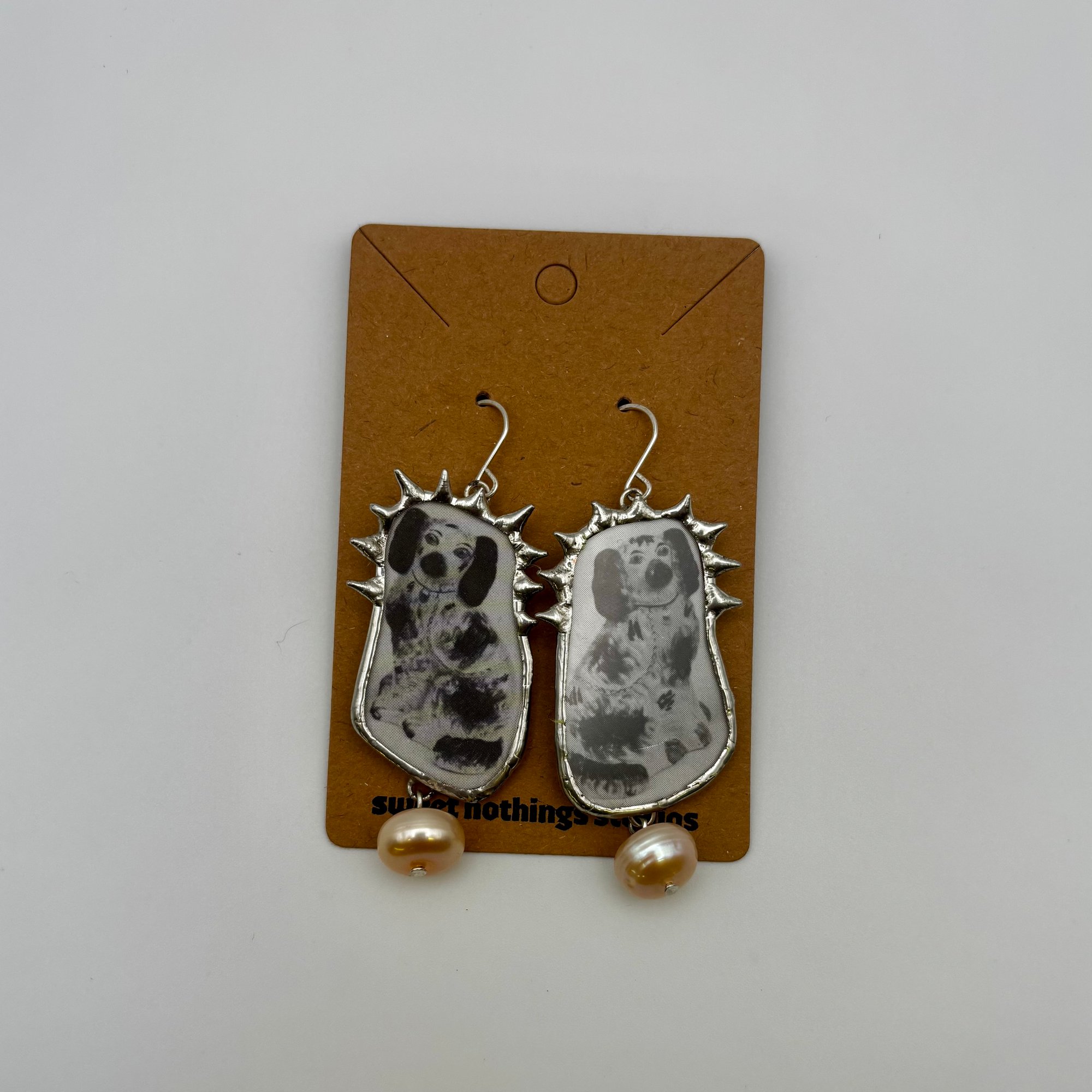 Adorable soft soldered earrings made with vintage magazine/book clippings and cultured pearls. Each earring weighs approximately .32oz each.