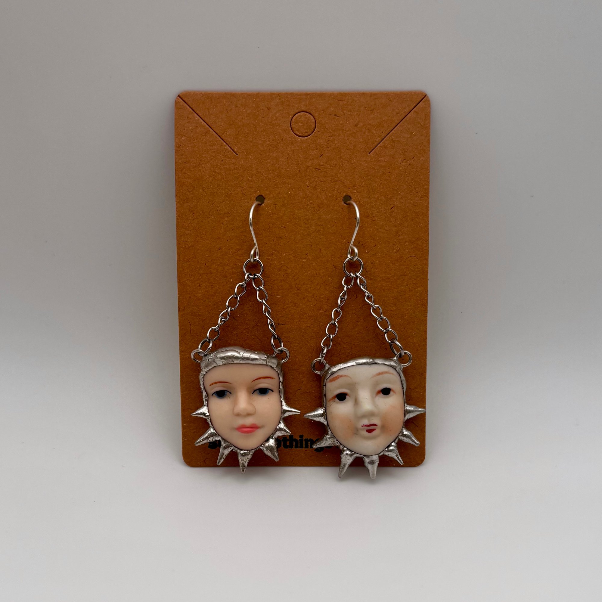 All earring hooks are sterling silver unless otherwise stated. Lead free solder is made up of a silver/copper/tin alloy. All findings and chains are stainless steel. Due to the handmade nature of this piece, handle with care. Spikes are...spiky. Glass and ceramic elements are fragile, always wear earring backs. DO NOT GET JEWELRY WET. See FAQ page for jewelry care.